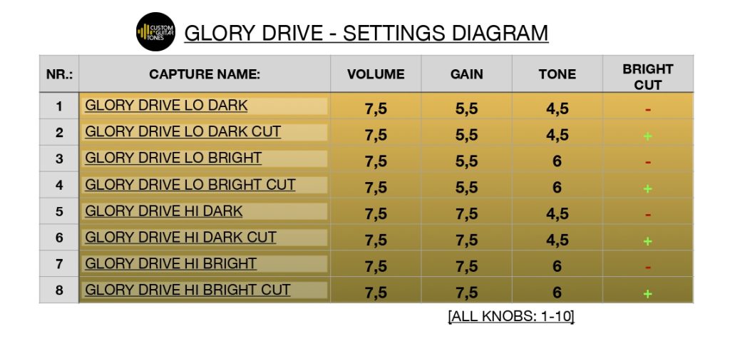 * Wszystkie marki wzmacniaczy są znakami towarowymi ich odpowiednich właścicieli i nie są w żaden sposób powiązane z Custom Guitar Tones. Kupujesz licencję na używanie tych profili do własnego użytku osobistego i/lub zawodowego, ale profile nie są przeznaczone do odsprzedaży ani do jakiejkolwiek innej nielicencjonowanej dystrybucji, bezpłatnej lub płatnej. Profile CGT mają na celu odtworzenie brzmienia wymienionych wzmacniaczy, a wszelkie użycie nazw marek ma wyłącznie charakter porównawczy i opisowy.
